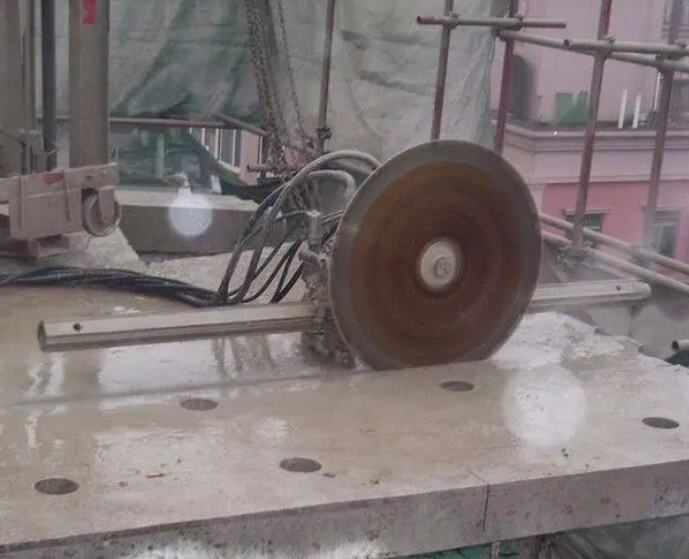 繩鋸切開。發(fā)動(dòng)開端按鈕,調(diào)整自動(dòng)輪提高張力,確保金剛石繩子恰當(dāng)繃緊,供給冷卻水,再發(fā)動(dòng)驅(qū)動(dòng)自動(dòng)輪,帶動(dòng)金剛石繩子反轉(zhuǎn)切開。吊裝及破碎。切開完結(jié)后,全體將混凝土構(gòu)件吊裝到指定的場所破碎,并及時(shí)清運(yùn)出施工現(xiàn)場。